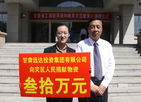 [2012-5-23]扶危濟困 奉獻(xiàn)社會 [2012-5-23]心系災(zāi)區(qū) 大愛遠(yuǎn)行 [2011-4-10]甘肅遠(yuǎn)達(dá)集團向青海玉樹地震災(zāi)區(qū)捐助價值30萬...